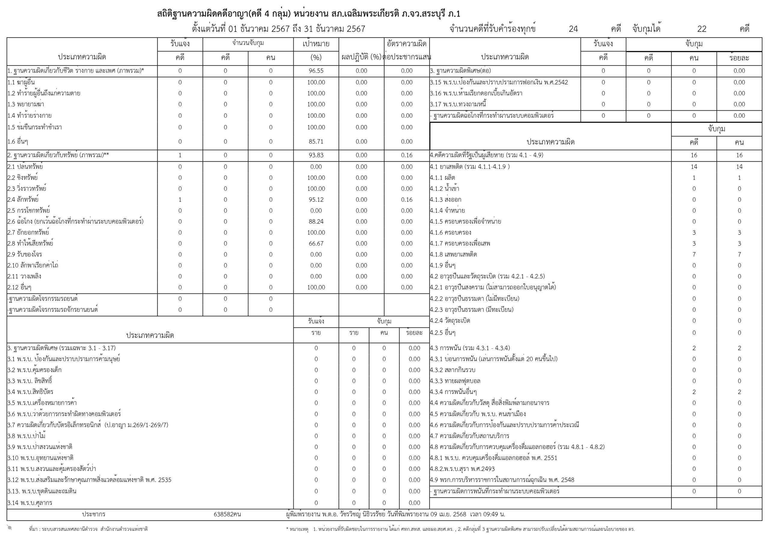 Download File 👇ข้อมูลผลการดำเนินงานในเชิงสถิติด้านคดีอาญา 4 กลุ่ม ตามระบบ CRIMES (1 – 30 พ.ย.67)