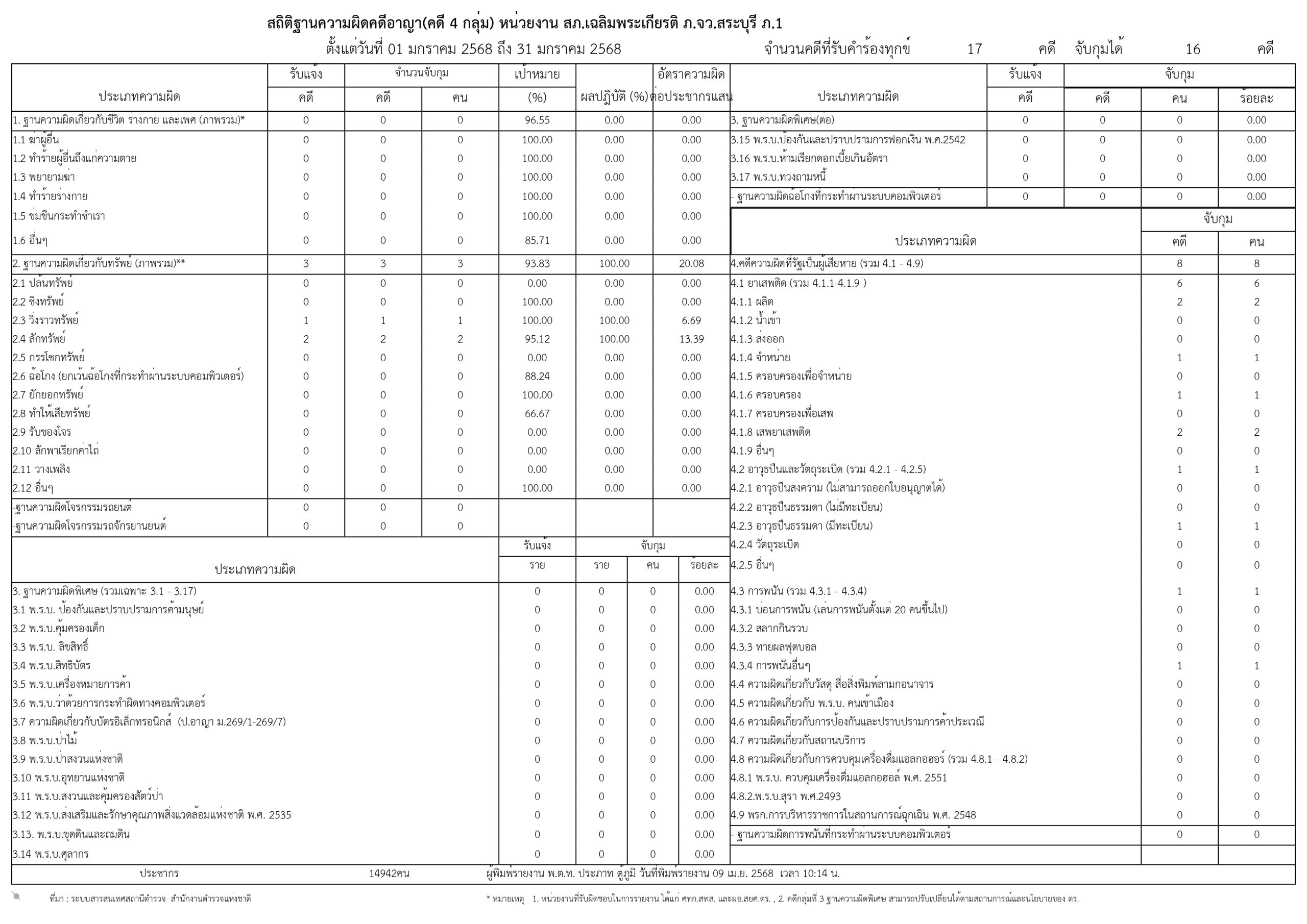ข้อมูลผลการดำเนินงานในเชิงสถิติ การตั้งจุดตรวจ จุดสกัด ประจำปีงบประมาณ พ.ศ.2568